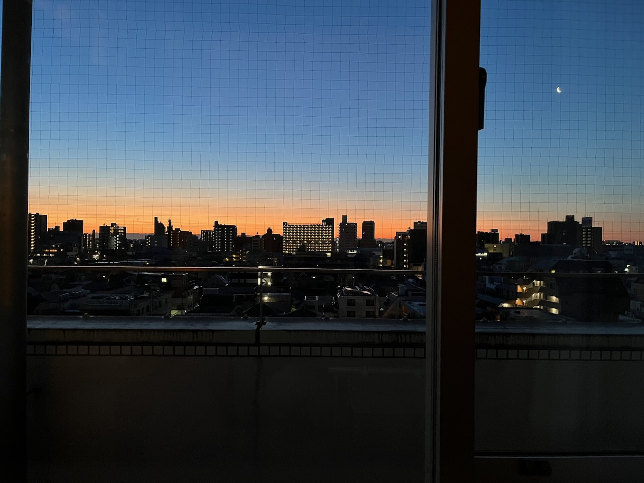 病室からの朝焼け。健康第一です。