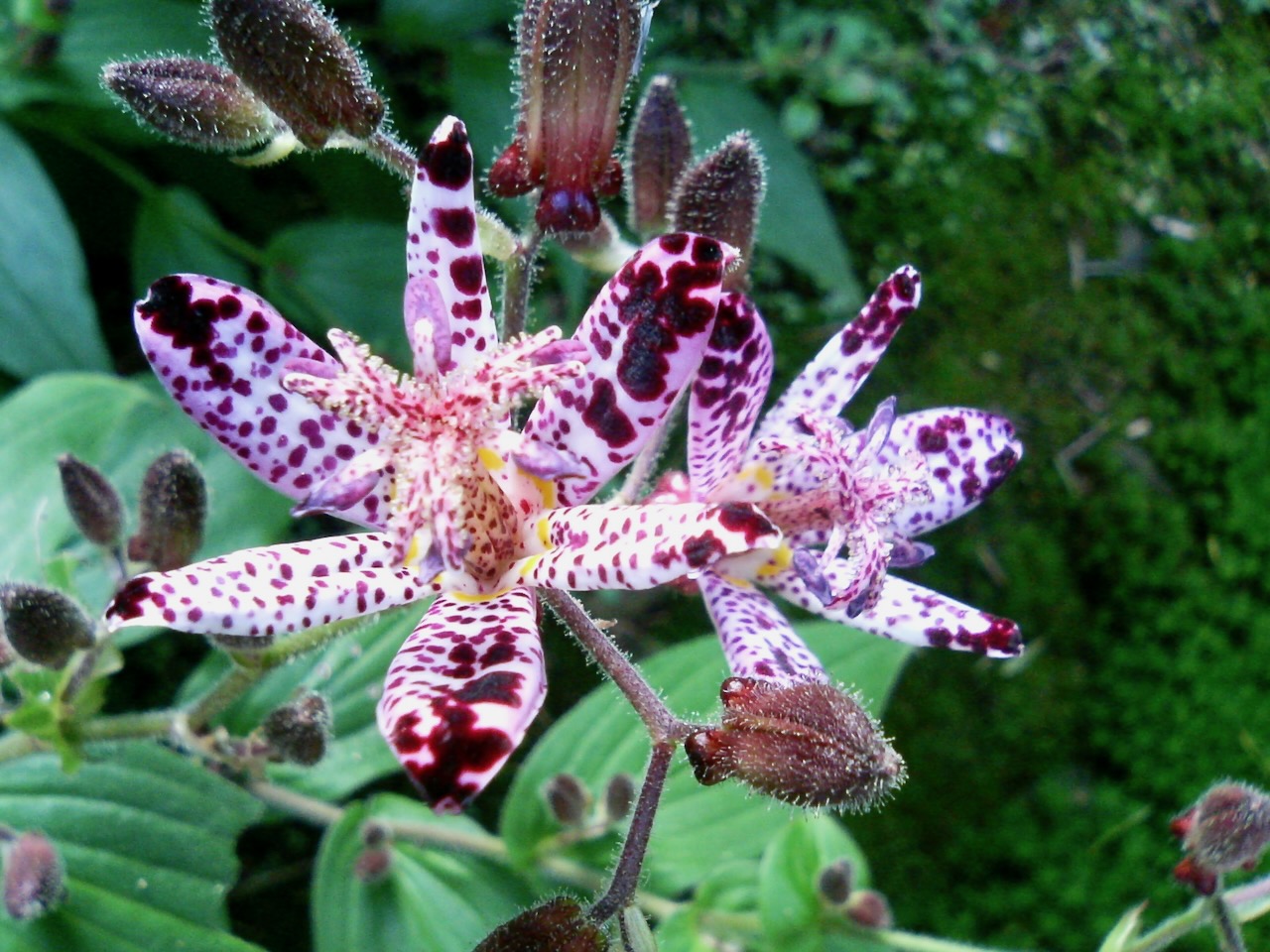 杜鵑草(ホトトギス)。花の模様が野鳥のほととぎすに似ているから。